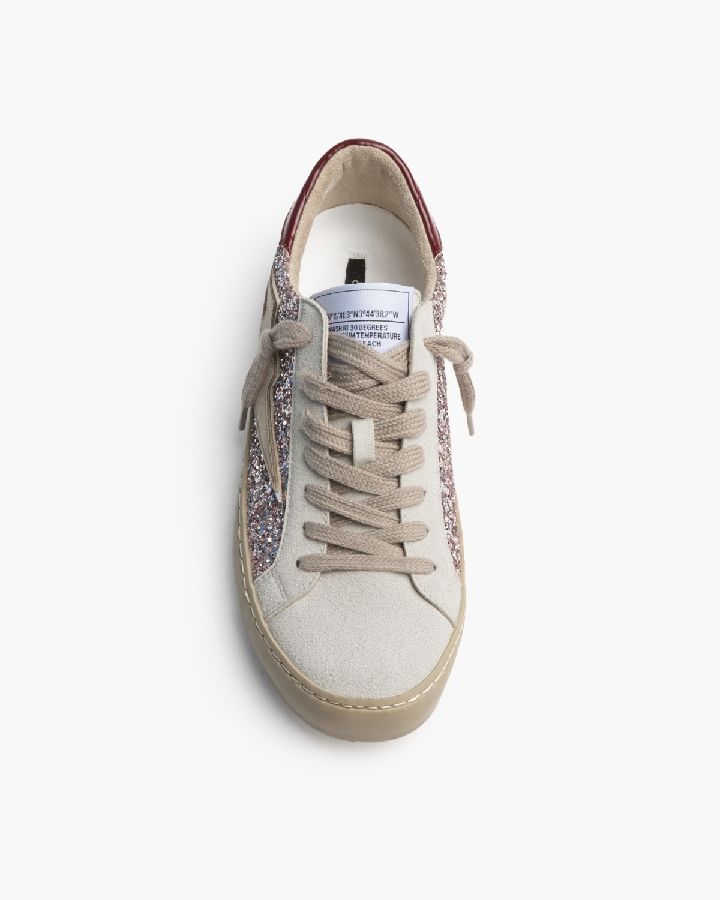 Zapatillas deportivas estilo retro en combinación de materiales y colores. No solo son cómodas, sino que también añaden un toque de glamour a tu look. Incorporan un espectacular rayo lateral y un detalle de glitter en tono rosa que aporta brillo y sofisticación. Su cierre mediante cordones garantiza un ajuste perfecto. Fabricadas en polipiel con interior textil, ofrecen confort y estilo en cada paso. ¡Descúbrelas y marcá tendencia!