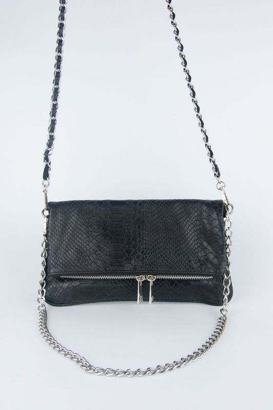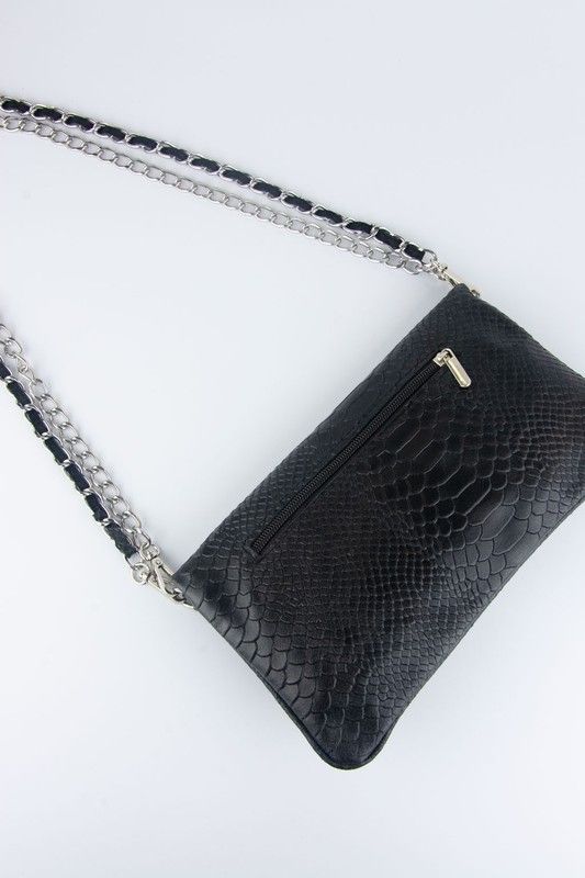 Sac en cuir naturel de type portefeuille, avec un design en noix de coco. Style rabat avec double chaîne amovible et fermeture magnétique. Disponible en différentes couleurs.
