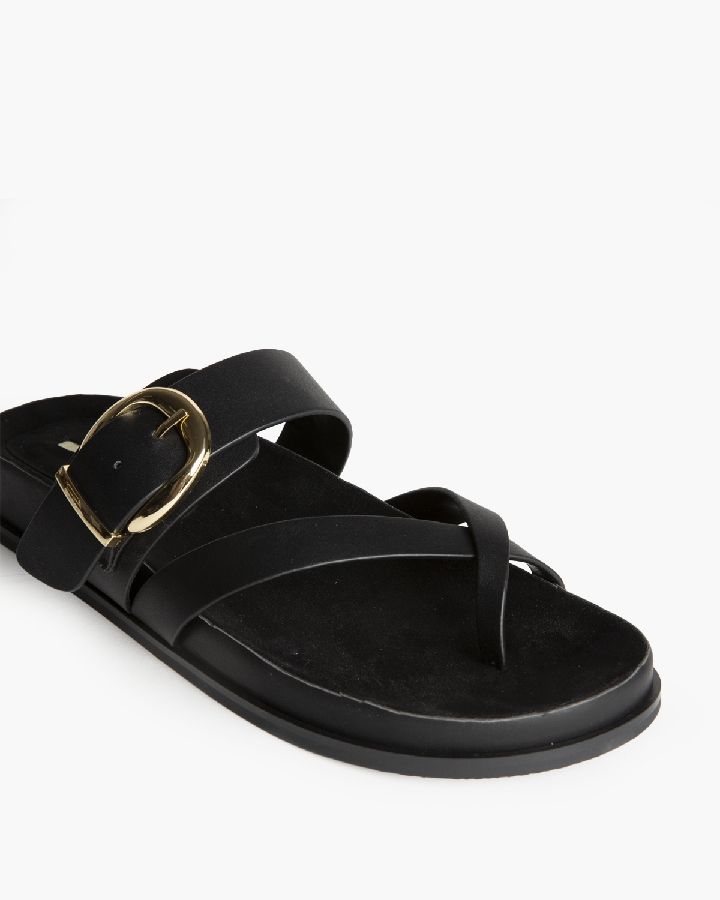 Sandalia Mujer Negro Corina con Hebilla Dorada – Sandalia Plana Verano