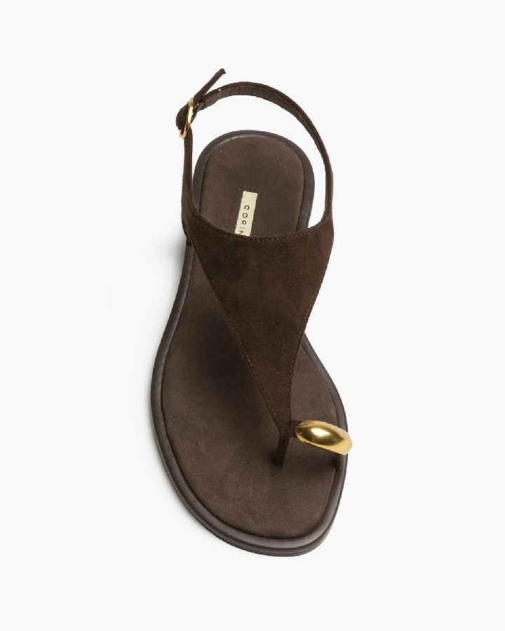 Sandalias marrones planas con anillo metálico