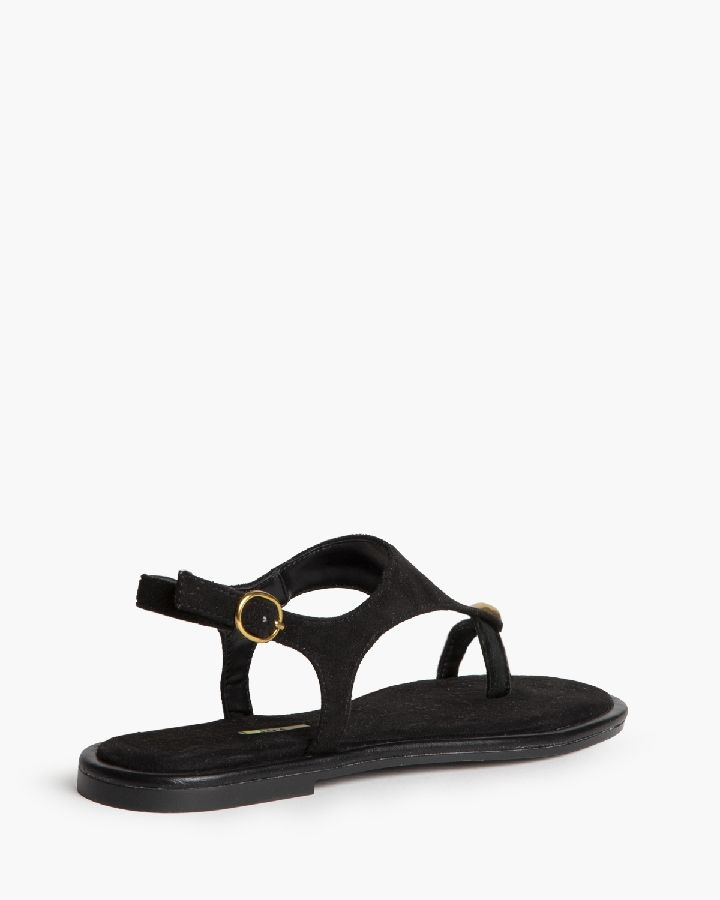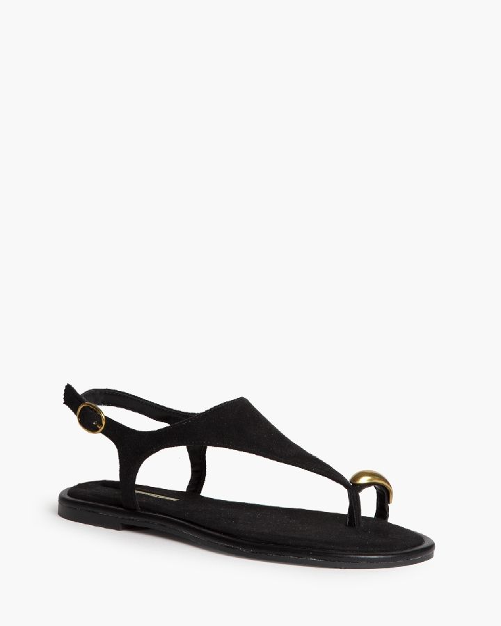 Sandalias negras planas con anillo metálico